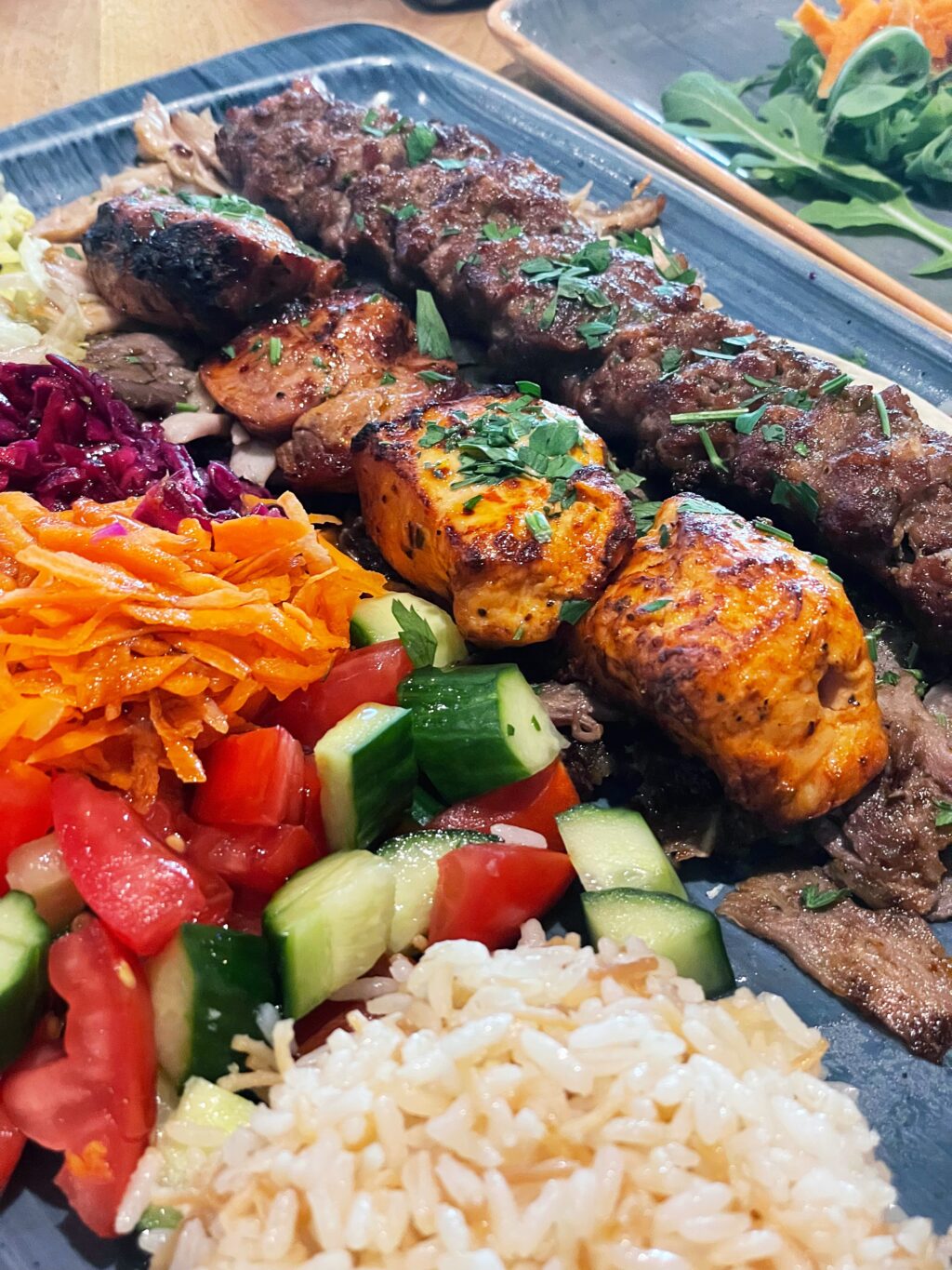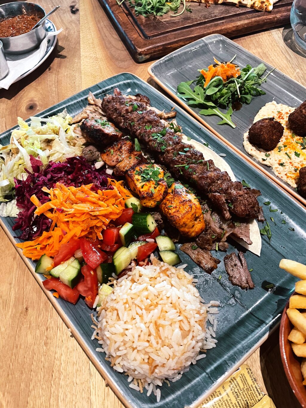 Everything was SO GOOD from the smooth humus and fresh warm bread to the best falafel I’ve ever had and then the mixed kebab was out of this world. The mixed kebab came with chicken shish, lamb shish, adana kebab, lamb doner and chicken doner served with rice and salad. Trust me, everything was delicious and I wish I was eating it all again right now.
