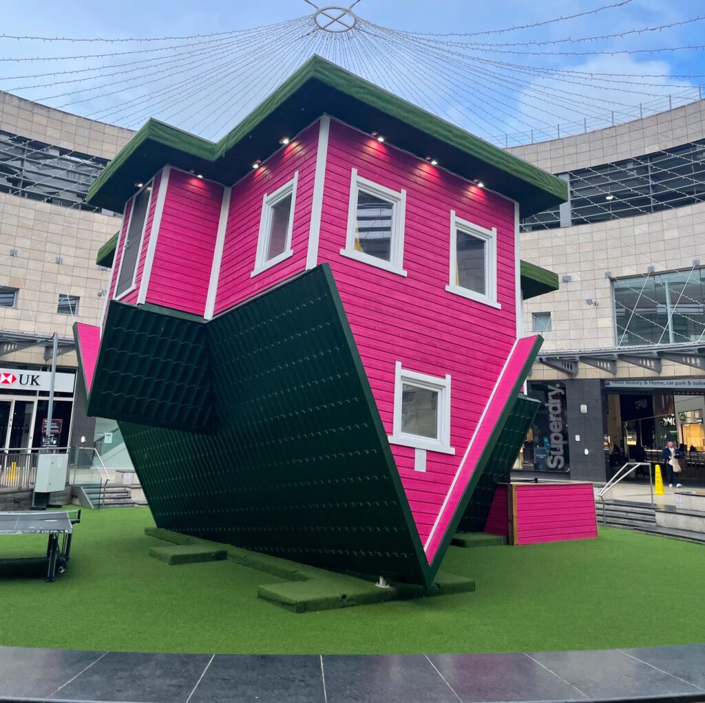 I never expected Milton Keynes to be a shopping destination but as soon as you set foot in Centre:MK you’ll see that it has much more going for it shop wise than Cambridge. It’s one of the UK’s top shopping destinations with over 190 shops, cafes and restaurants. I tried to get X to go into the Upside Down House but he was having none of it.