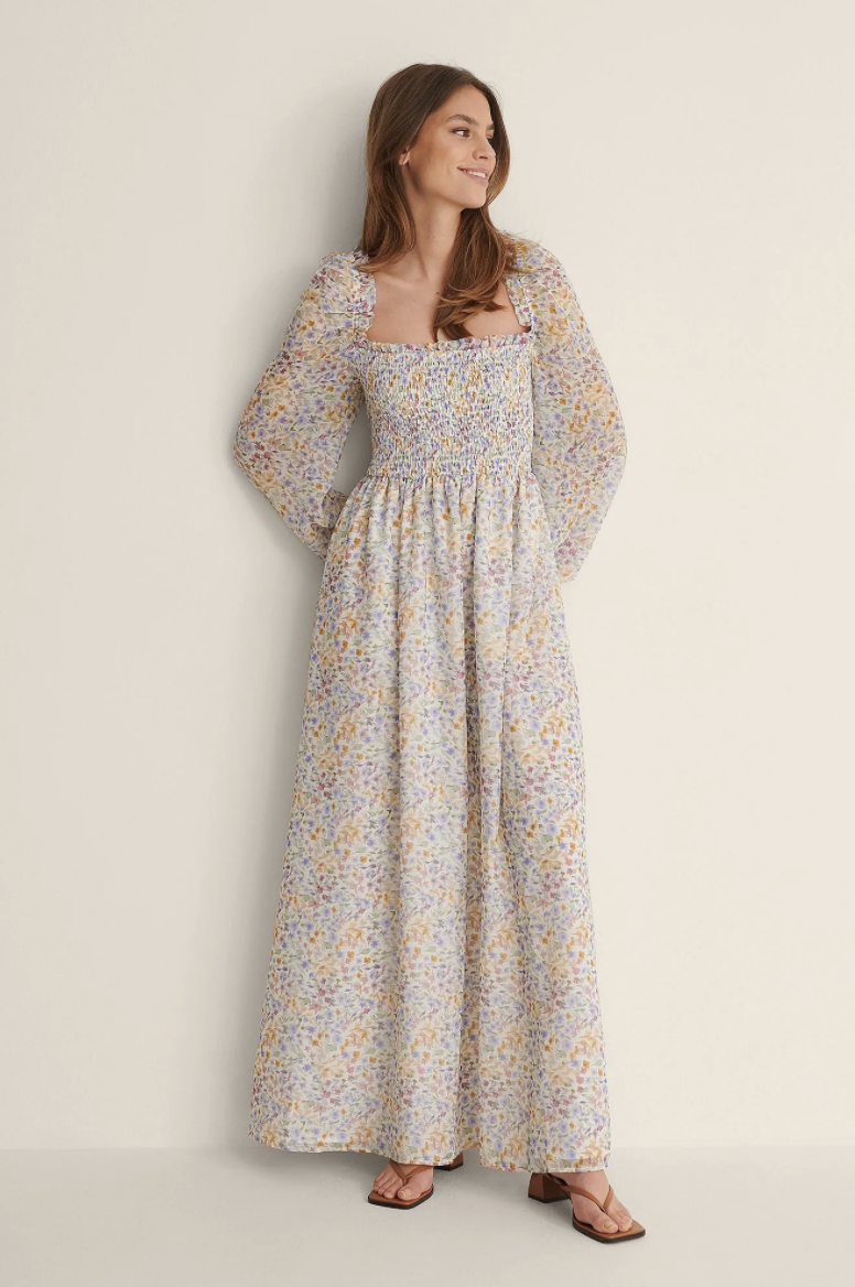 Let’s get more specific, maxi shirred dresses with sleeves and extra points if it has super puffy princess sleeves.