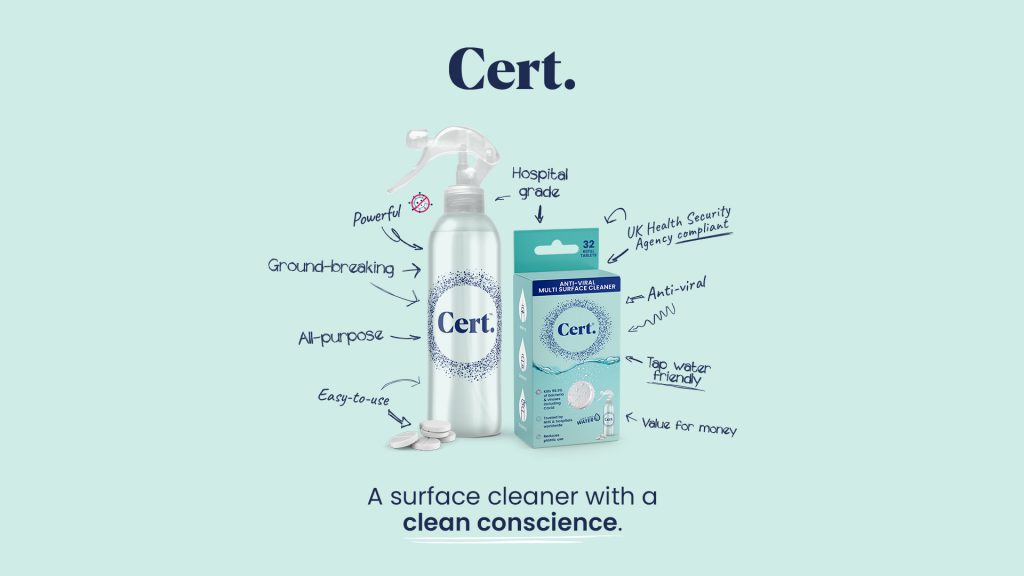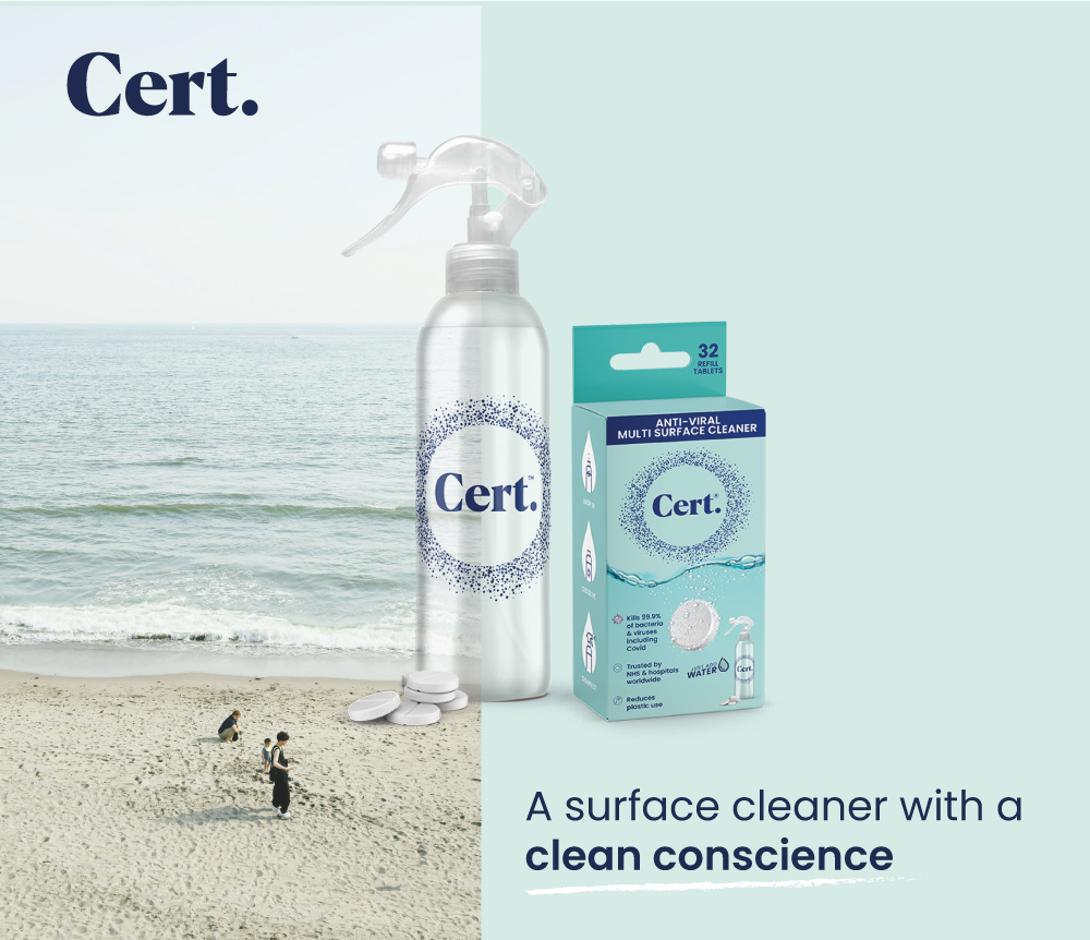 Cert. is the first consumer launch from Hydrachem, the leading suppliers of hospital standard cleaning and disinfecting products for the NHS. Cert. offer a dissolvable tablet which provides hospital-grade cleaning products for your home.